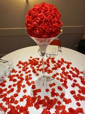 Boules de fleurs artificielles de 30 cm de diamètre.