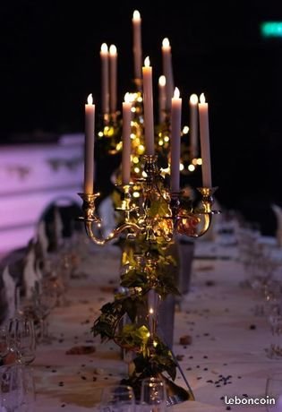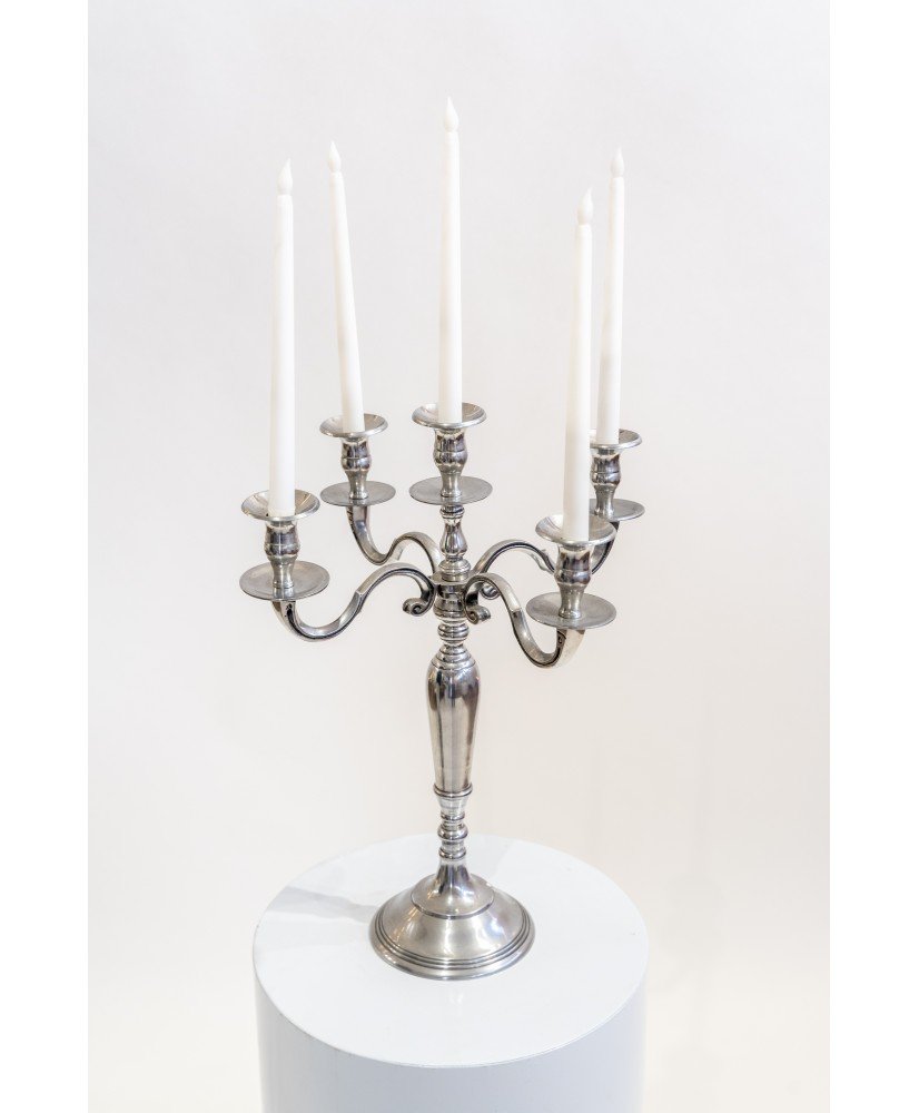 Ce magnifique chandelier couleur acier donne du caractère à tous vos événements et peut être accompagné de bougie LED pour donner une touche finale à votre décoration.