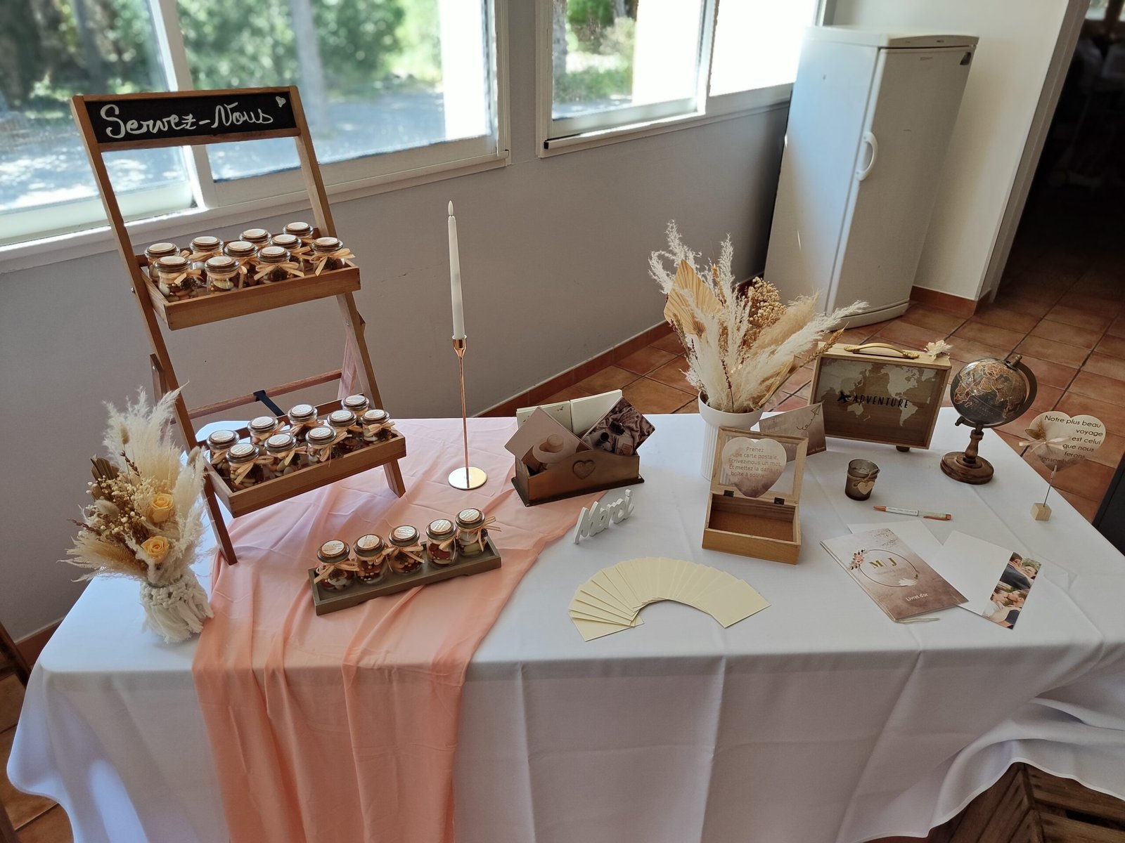 Etagère marron H 80 cm. Peut servir de support pour vos objets personnalisés comme des verres en plastique, vos contenants à dragées ou autres