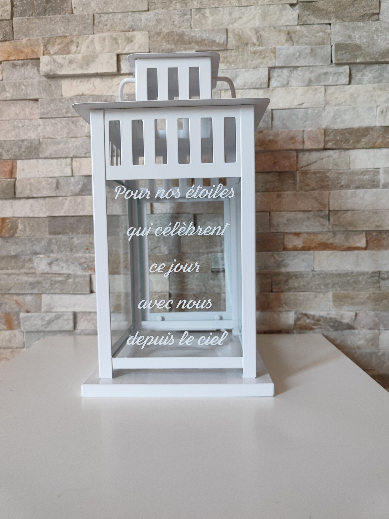 Lanterne blanche de 28 cm de haut.