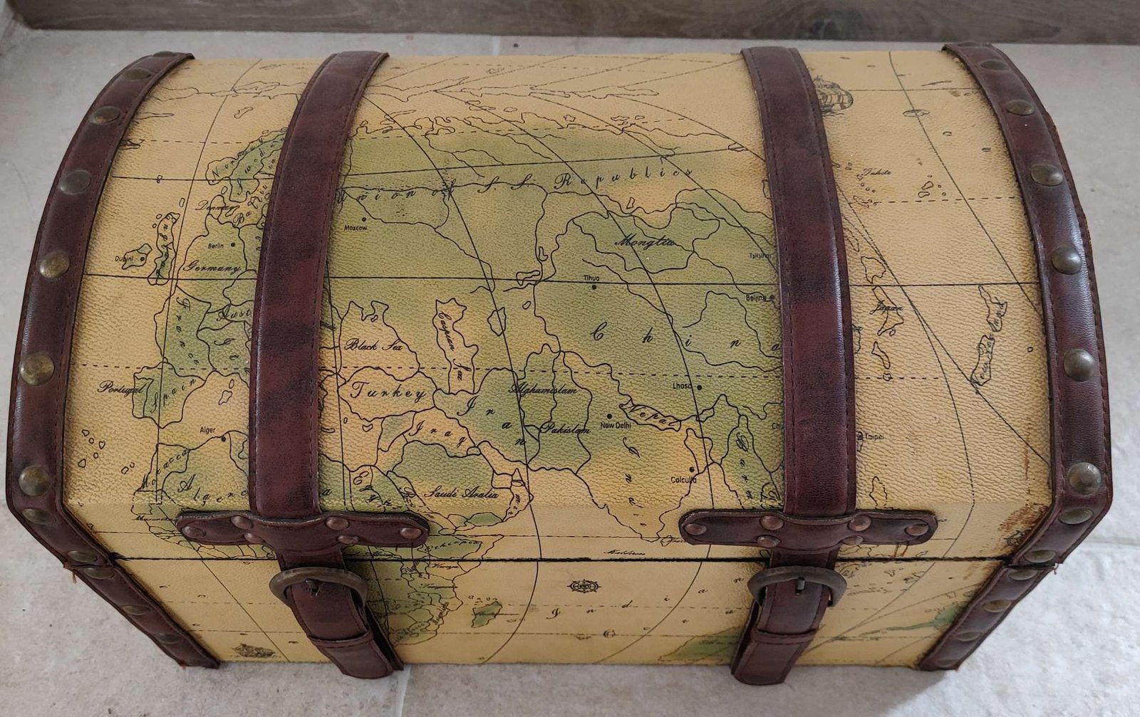 malle décorée sur le thème du voyage