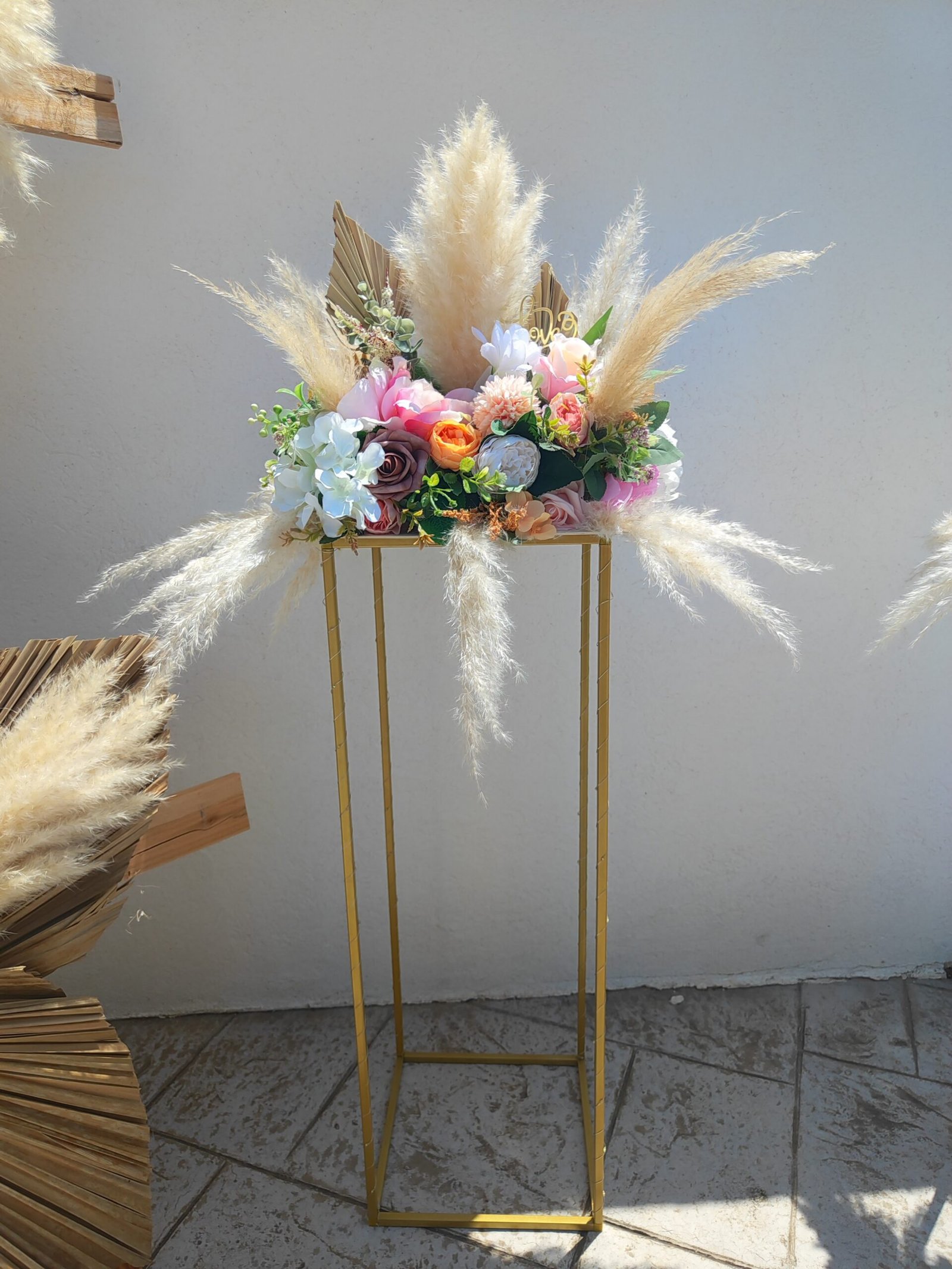 Vase colonne carré couleur or en métal