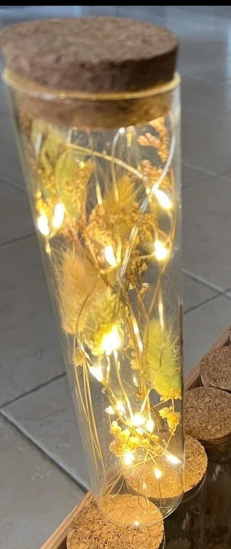 Joli vase forme de tube à essai de 23 cm de haut avec fleurs séchées